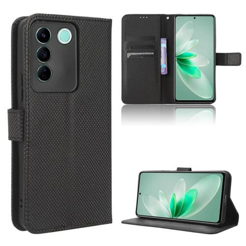 Para Vivo V27E / S16E Caja del Teléfono de Cuero con Textura de Diamante (Negro)