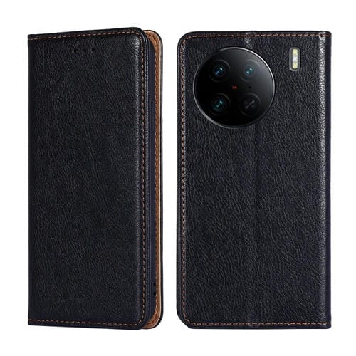 Para Vivo X90 Pro 5G Estuche para Teléfono de Cuero Magnético de Color Sólido con Aceite Brillante (Negro)