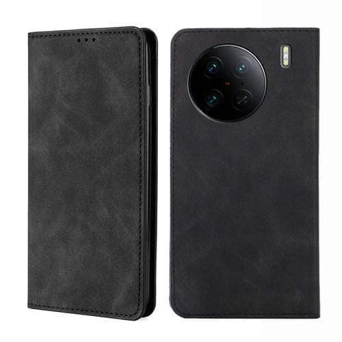 Para Vivo X90 Pro 5G Skin Feel Magnetic Horizontal Flip Leather Phone Case (Negro)