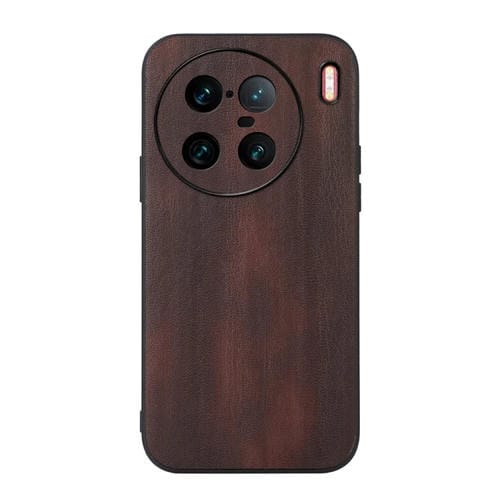 Para Vivo X90 Pro + Funda de Teléfono Pu con Textura de Vaca Amarilla (Café)