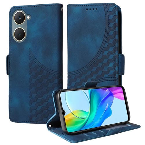 Para Vivo Y03 4G / Y18 / Y18E Funda para Teléfono de Cuero Estrellado con Rombos En Relieve (Azul)