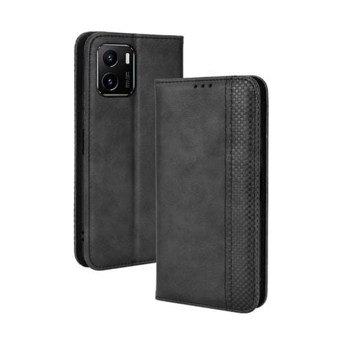 Para Vivo Y15S 2021 / Y15A Caja de Cuero de Cuero de Textura Retro Textura (Negro)