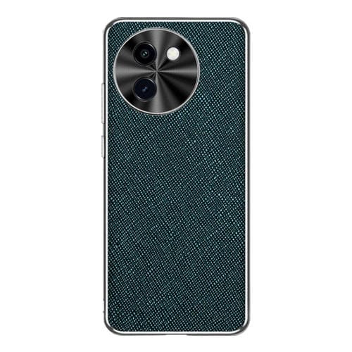 Para Vivo Y200I Funda para Teléfono de Cuero Pu con Textura Cruzada y Borde Plateado (Verde Oscuro)