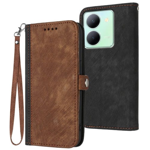Para Vivo Y27 5G / Y36 4G Funda de Cuero para Teléfono con Hebilla Lateral Global y Correa de Mano con Doble Pliegue (Marrón)