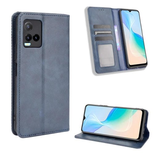 Para Vivo Y33T / Y33S / Y21 / Y21S Hebilla Magnética Textura Retro Funda de Cuero para Teléfono (Azul)