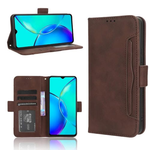 Para Vivo Y35 + 5G Skin Feel Becerro Textura Ranuras para Tarjetas Funda de Cuero para Teléfono (Marrón)