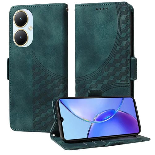 Para Vivo Y35M + / Y35 + / Y27 4G Funda para Teléfono de Cuero Estrellado con Rombos En Relieve (Verde)