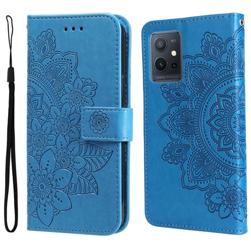 Para Vivo Y55 5G / Y75 5G / T1 5G 7-Petal Flores Patrón de Estampado En Relieve Funda de Cuero de Flip Horizontal (Azul)