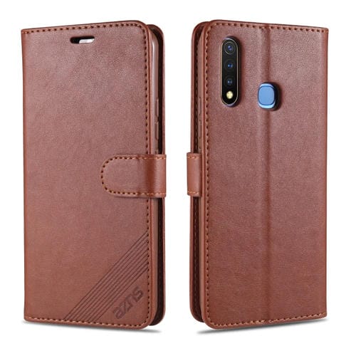 Para Vivo Y5S / U3 / Y19 Azns Funda de Cuero con Tapa Horizontal con Textura de Piel de Oveja con Soporte y Ranuras para Tarjetas y Billetera (Marrón)