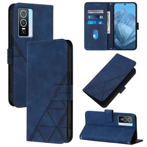 Para Vivo Y76 5G Crossbody Funda de Cuero con Tapa En Relieve 3D (Azul)