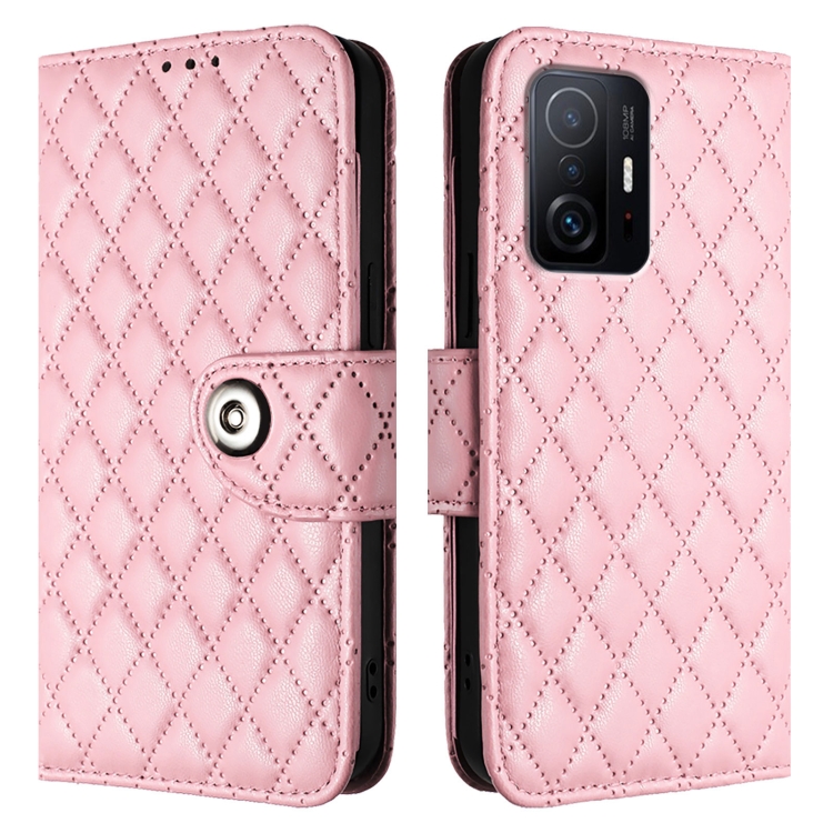 Para Xiaomi 11T / 11T Pro Funda de Cuero con Tapa con Textura Rómbica y Cordón (Rosa)