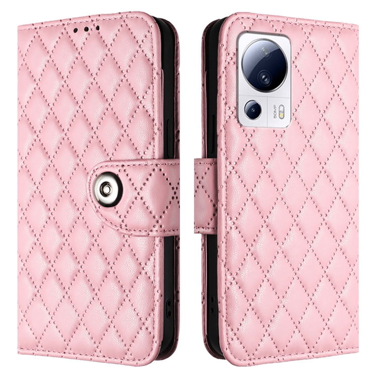 Para Xiaomi 13 Lite / Civi 2 Funda para Teléfono con Tapa de Cuero con Textura Rómbica y Cordón (Rosa)