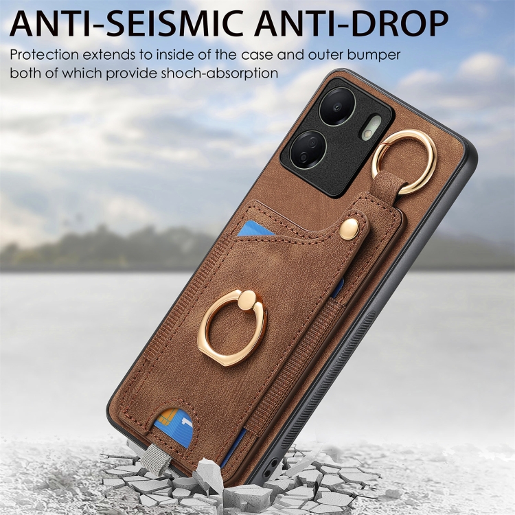 Para Xiaomi 13 Lite Funda para Teléfono con Bolsa para Tarjeta con Anillo y Sensación de Piel Retro con Lazo para Colgar (Marrón)