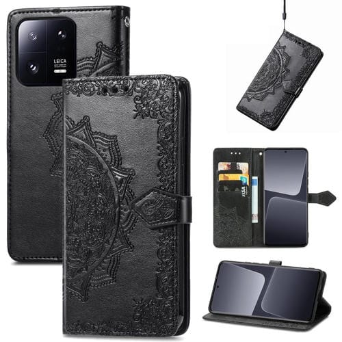 Para Xiaomi 13 Pro Mandala Flower Estuche para Teléfono de Cuero En Relieve (Negro)