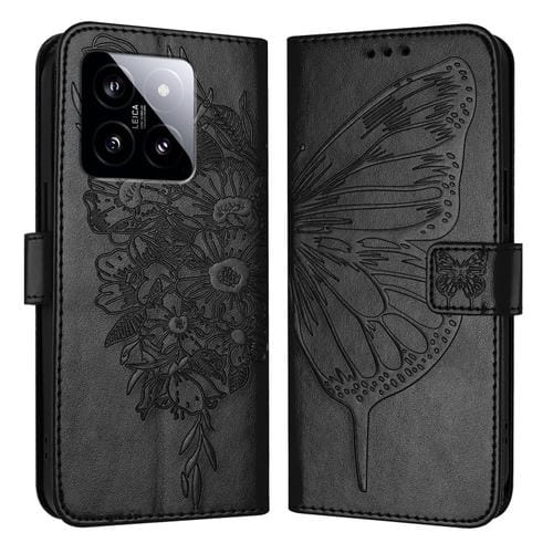 Para Xiaomi 14 5G Funda De Teléfono De Cuero Con Mariposa En Relieve Global (Negro)