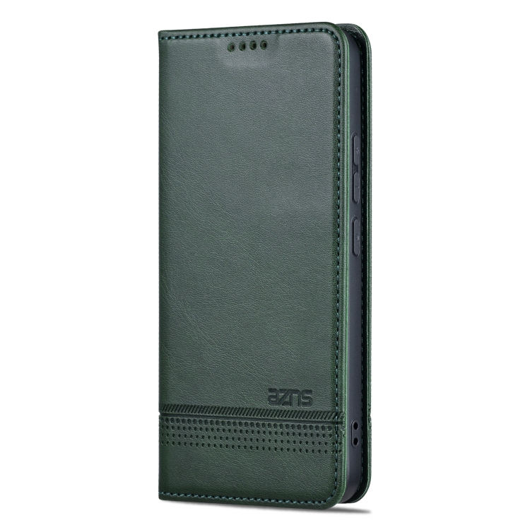 Para Xiaomi 14 Pro Azns Funda De Teléfono De Cuero Con Tapa Con Textura De Pantorrilla Magnética (Verde Oscuro)