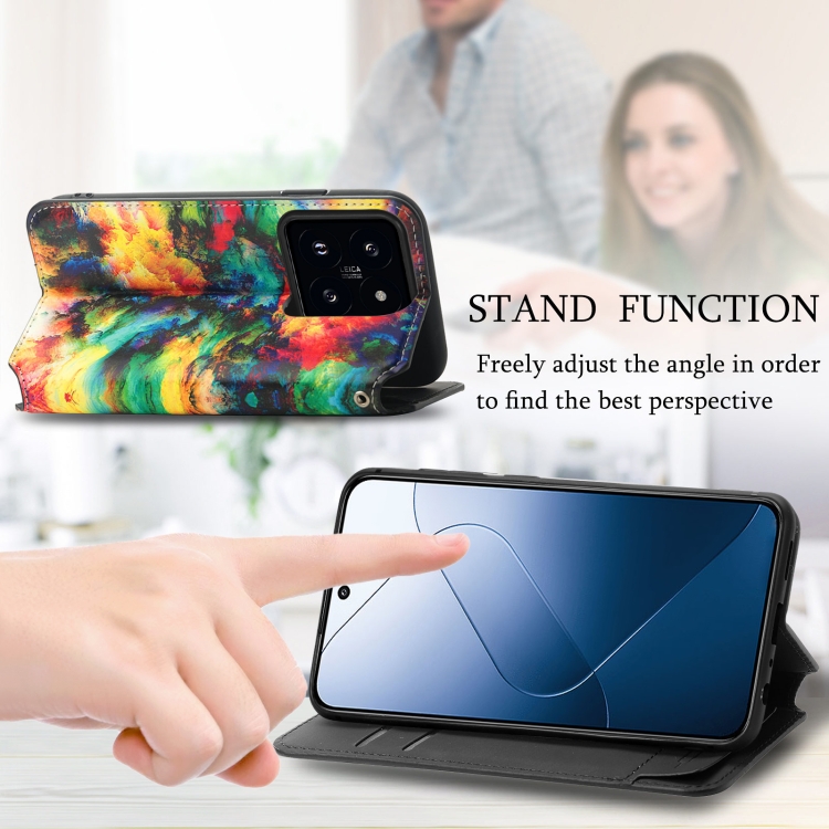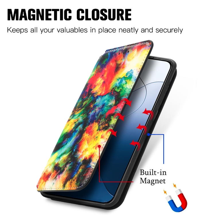Para Xiaomi 14 Pro Caseneo Funda De Cuero Magnética Colorida Para Teléfono (Nube Colorida)