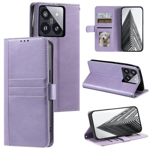 Para Xiaomi 14 Pro Funda De Cuero Para Teléfono Con Billetera Simple De 6 Tarjetas (Púrpura)