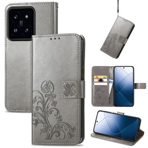 Para Xiaomi 14 Pro Funda De Teléfono De Cuero En Relieve Con Cierre De Cuatro Hojas (Gris)