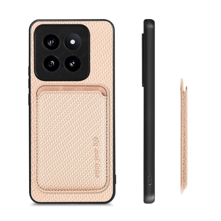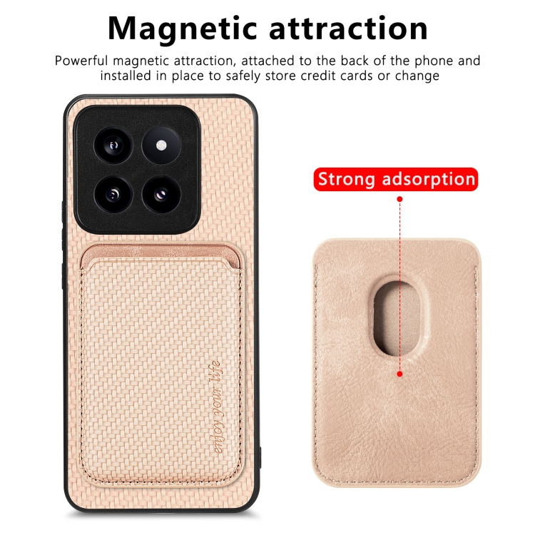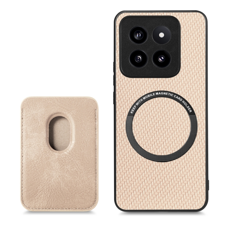 Para Xiaomi 14 Pro Funda Magnética Para Teléfono Con Tarjeta De Cuero De Fibra De Carbono (Caqui)