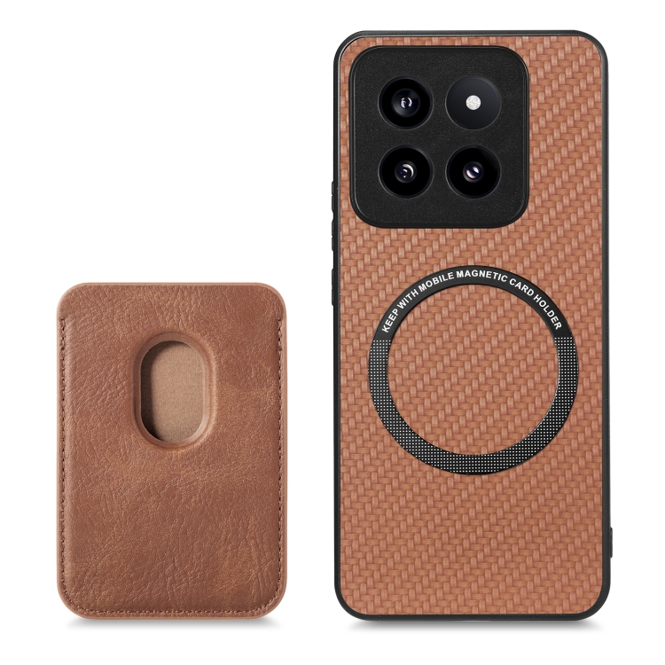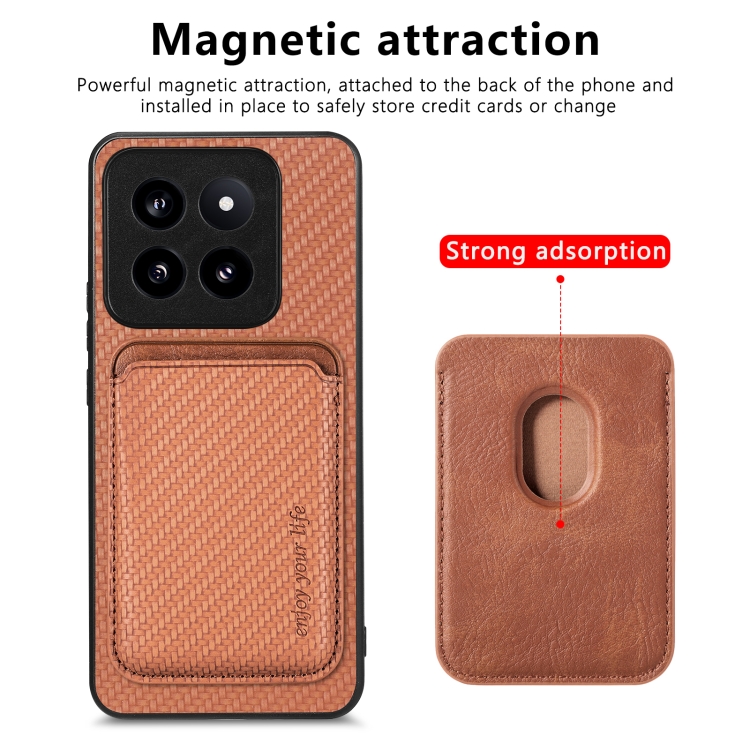 Para Xiaomi 14 Pro Funda Magnética Para Teléfono Con Tarjeta De Cuero De Fibra De Carbono (Marrón)