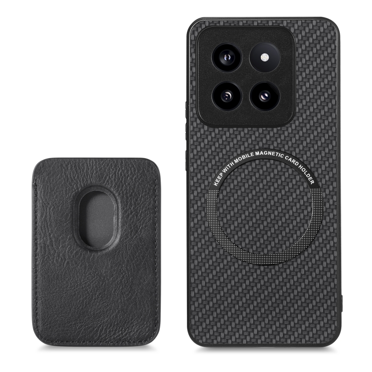 Para Xiaomi 14 Pro Funda Magnética Para Teléfono Con Tarjeta De Cuero De Fibra De Carbono (Negro)