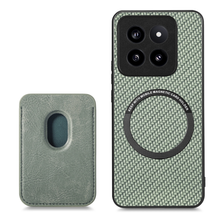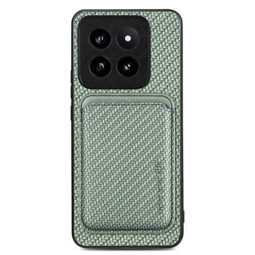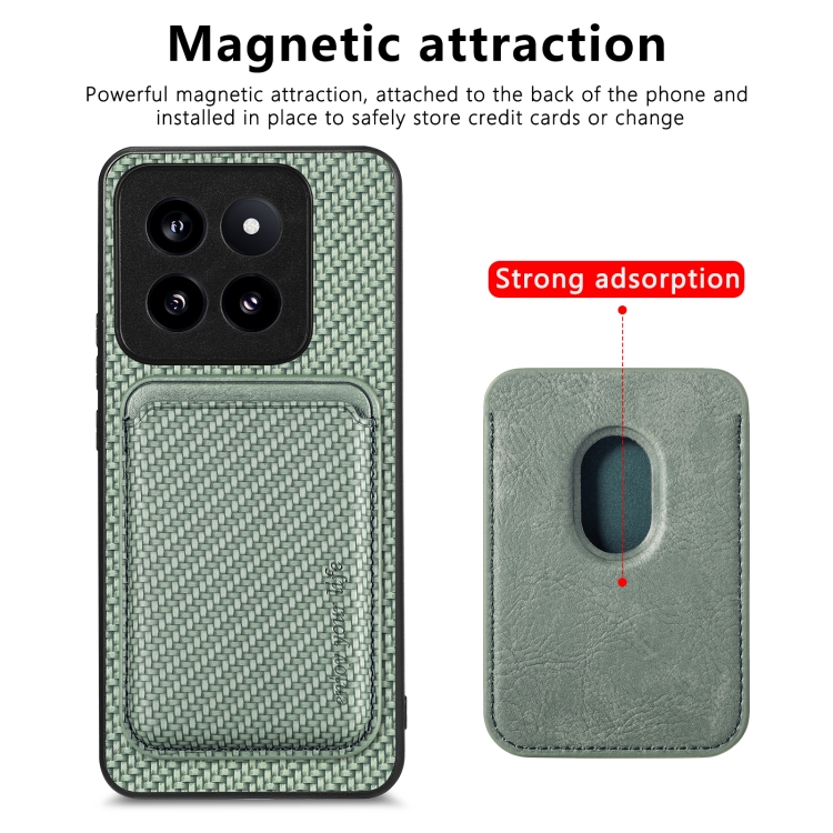 Para Xiaomi 14 Pro Funda Magnética Para Teléfono Con Tarjeta De Cuero De Fibra De Carbono (Verde)