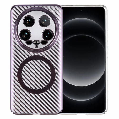Para Xiaomi 14 Ultra 6D Caja De Teléfono Para Pc Magsafe Transparente Con Fibra De Carbono Plateada (Aurora Purple)