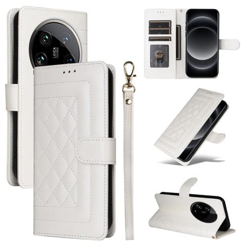 Para Xiaomi 14 Ultra Diamond Lattice Funda De Cuero Para Teléfono Con Tapa (Blanco)