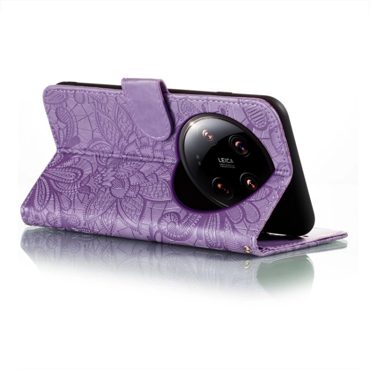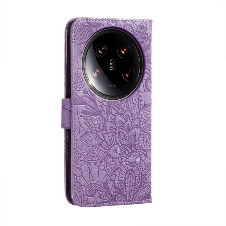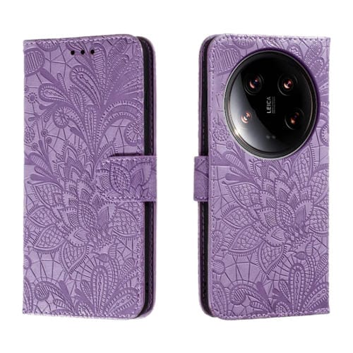 Para Xiaomi 14 Ultra Lace Flower Embossed Flip Funda De Cuero Para Teléfono (Púrpura)