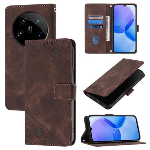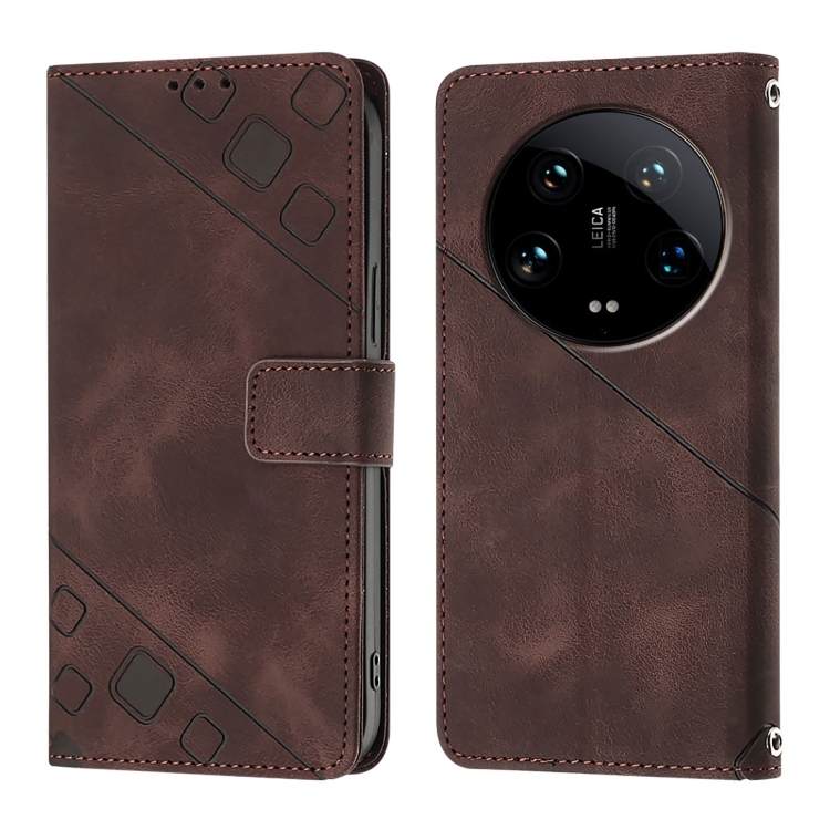 Para Xiaomi 14 Ultra Skin Feel Funda De Cuero Para Teléfono En Relieve (Marrón)