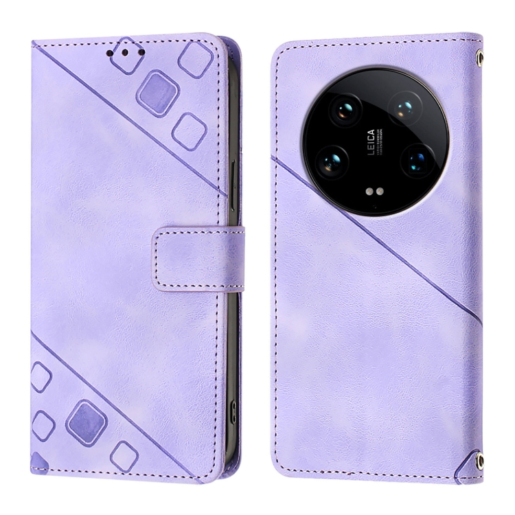 Para Xiaomi 14 Ultra Skin Feel Funda De Cuero Para Teléfono En Relieve (Púrpura Claro)