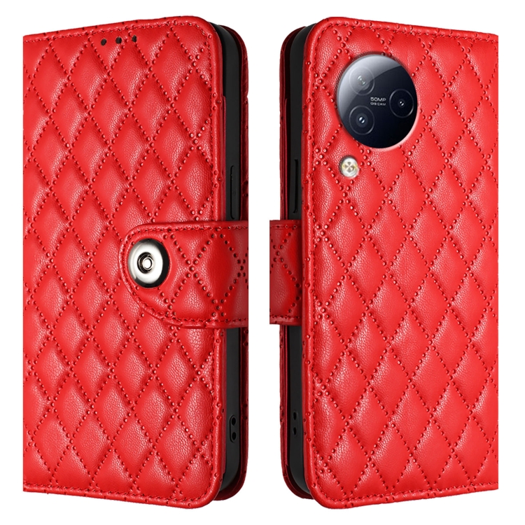 Para Xiaomi Civi 3 Funda de Cuero con Tapa con Textura Rómbica y Cordón (Rojo)