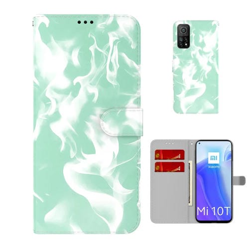Para Xiaomi Mi 10T Pro 5G / 10T 5G Cloud Fog Pattern Flip Horizontal Funda de Cuero con Soporte y Ranura para Tarjeta y Billetera (Menta Verde)