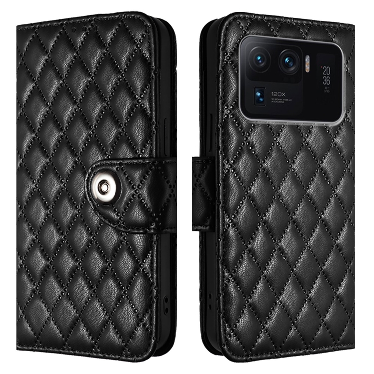 Para Xiaomi Mi 11 Ultra Rhombic Texture Funda de Cuero con Tapa para Teléfono con Cordón (Negro)