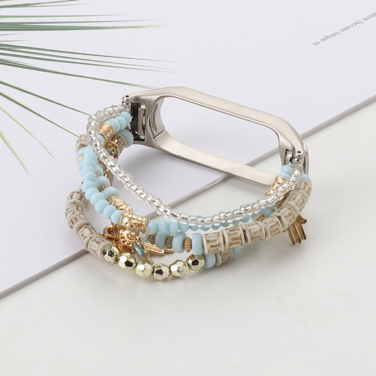Para Xiaomi Mi Band 5 y 6 Mori Style Beade Bracelet Band (Blue Pink)