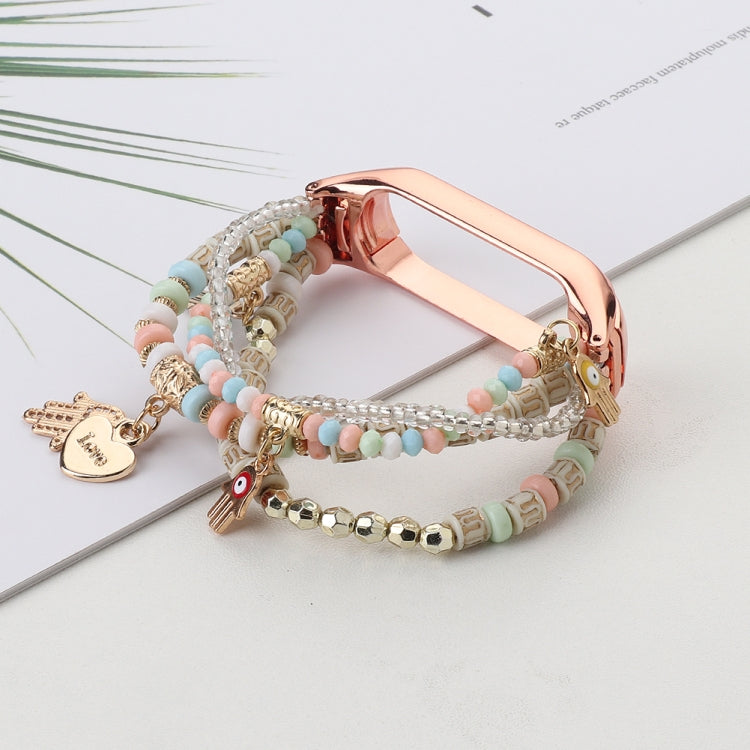 Para Xiaomi Mi Band 5 y 6 Mori Style Beade Bracelet Band (rosa)
