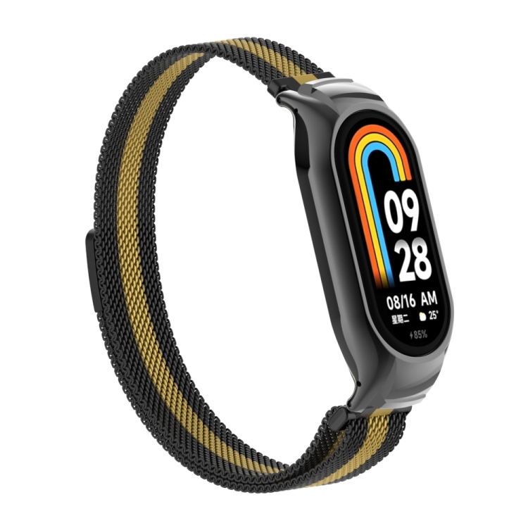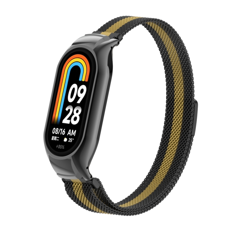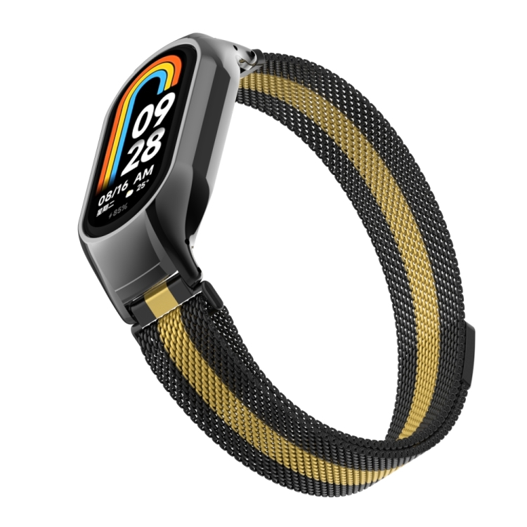 Caja de Metal Integrada + Banda Magnética Milanesa para Xiaomi Mi Band 8 (Negro + Oro)