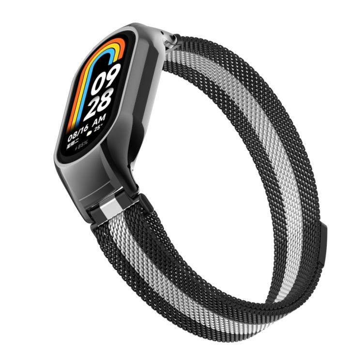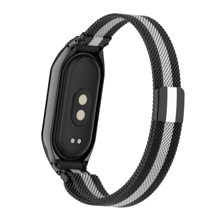 Caja de Metal Integrada + Banda Magnética Milanesa para Xiaomi Mi Band 8 (Negro + Plata)