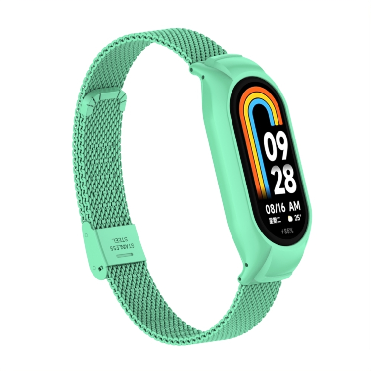 Caja de Metal integrada para Xiaomi Mi Band 8 + Correa con Hebilla de Malla de Acero (Mar Azul)