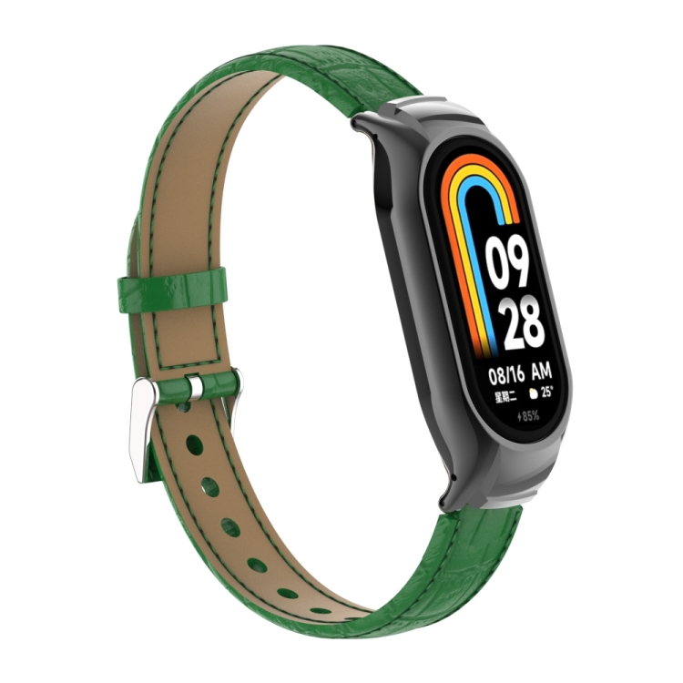 Estuche de Metal + Correa de Cuero para Xiaomi Mi Band 8 (Verde)
