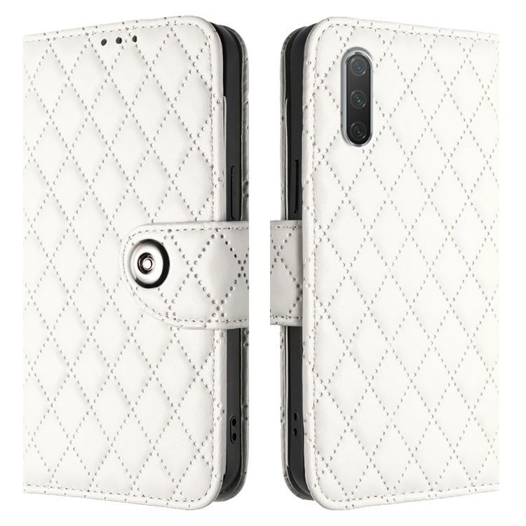 Para Xiaomi Mi Cc9E / Mi A3 Funda para Teléfono de Cuero con Tapa con Textura Rómbica y Cordón (Blanco)