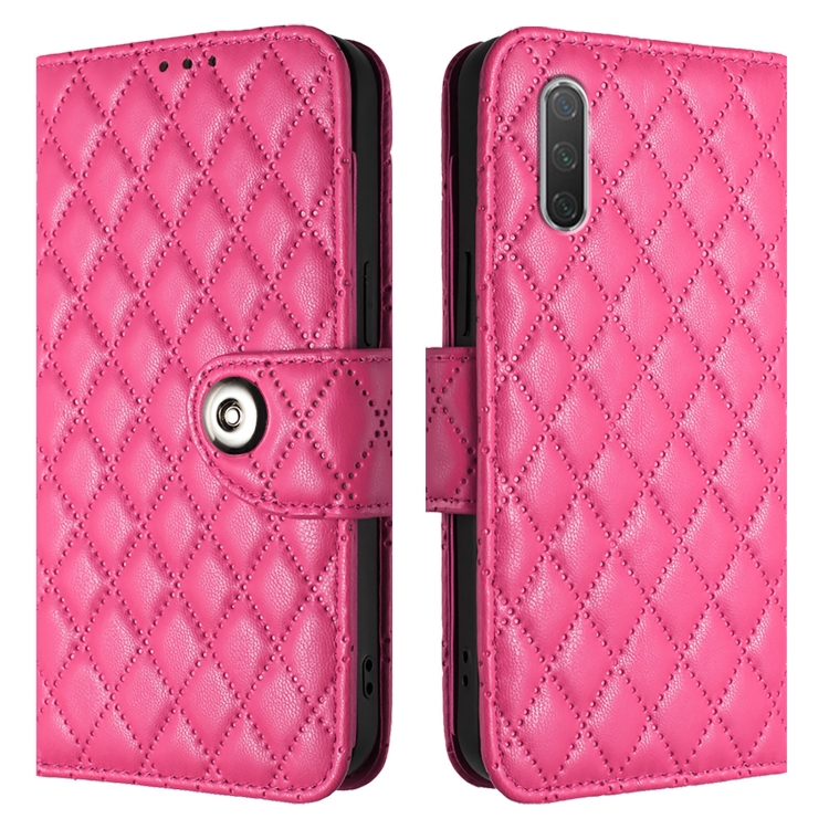 Para Xiaomi Mi Cc9E / Mi A3 Funda para Teléfono de Cuero con Tapa con Textura Rómbica y Cordón (Rojo Rosa)