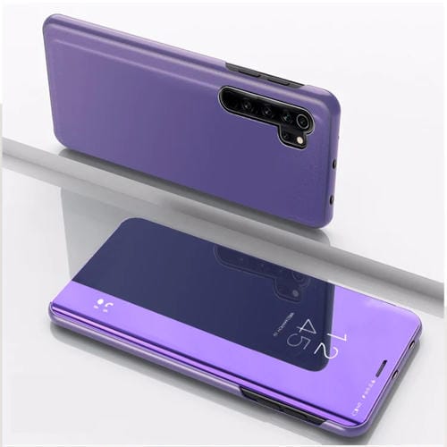 Para Xiaomi Note 10 Cubierta de Cuero con Tapa Horizontal con Espejo Plateado con Soporte Funda para Teléfono Móvil (Morado Oscuro)