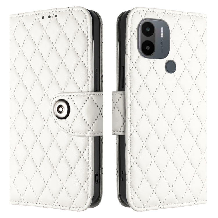 Para Xiaomi Poco C51 / C50 Funda para Teléfono con Tapa de Cuero con Textura Romboidal y Cordón (Blanco)