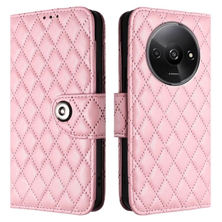 Para Xiaomi Poco C61 Funda para Teléfono de Cuero con Tapa con Textura Rómbica y Cordón (Rosa)