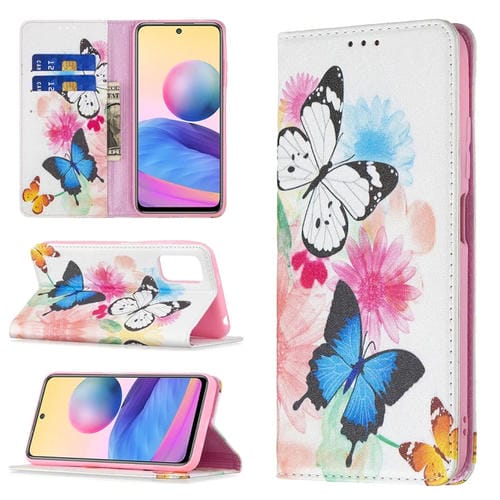 Para Xiaomi Poco M3 Pro / Redmi Note 10 5G Patrón de Dibujo de Color Invisible Magnético Horizontal Flip Pu Funda de Cuero con Soporte y Ranuras para Tarjetas (Dos Mariposas)