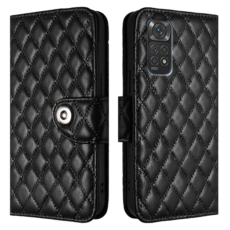 Para Xiaomi Poco M4 Pro 5G Funda para Teléfono con Tapa de Cuero con Textura Romboidal y Cordón (Negro)