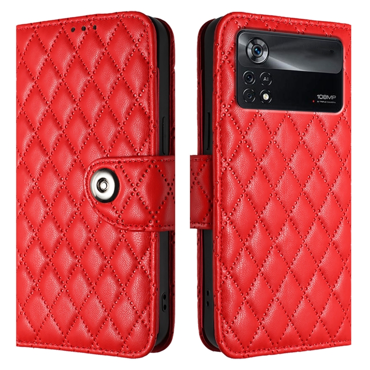Para Xiaomi Poco X4 Pro 5G Funda de Cuero con Tapa con Textura Romboidal y Cordón (Rojo)