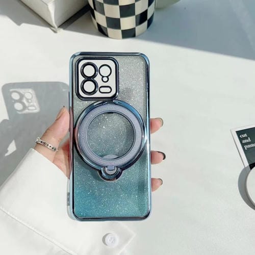 Para Xiaomi Redmi 12C Rotación Magsafe Holder Gradient Glitter TPU Funda para Teléfono (Azul Sierra)